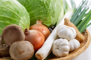 原材料/野菜(キャベツ(国産)、玉葱、白葱、青葱、生姜)、皮(小麦粉、小麦たん白、食用加工油脂、澱粉、食塩)、豚肉、米味噌、豚脂、澱粉、胡麻油、砂糖、合成清酒、醤油、胡椒